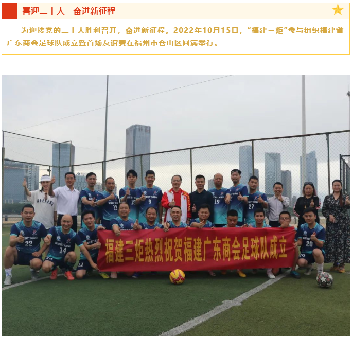 【喜迎二十大 奮進(jìn)新征程】“福建三炬”參與組織福建省廣東商會(huì)足球隊(duì)成立暨首場(chǎng)友誼賽圓滿舉行!
