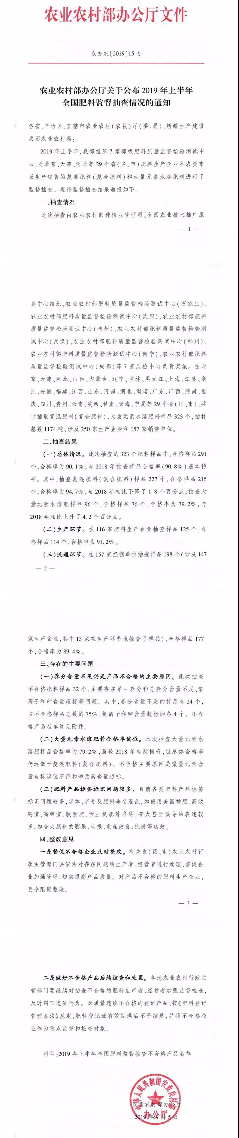 [行業(yè)快訊]農(nóng)業(yè)農(nóng)村部公布2019年上半年全國肥料監(jiān)督抽查情況,“福建三炬”抽檢樣品全部合格