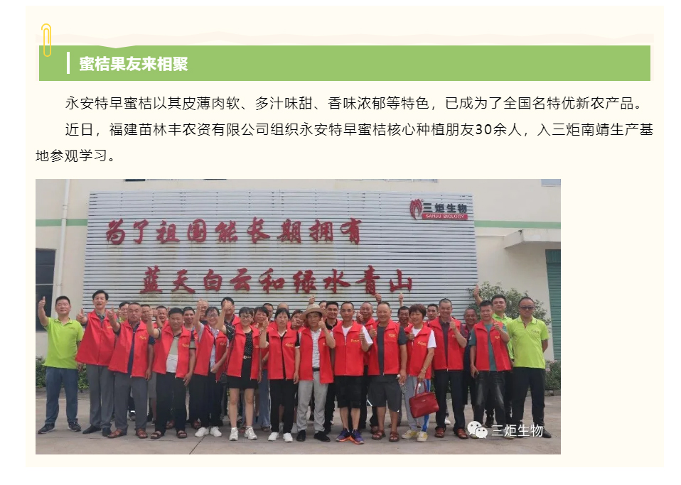 讓更多的永安特早蜜桔種植戶朋友用上更好的肥料,攜手共贏,服務三農!
